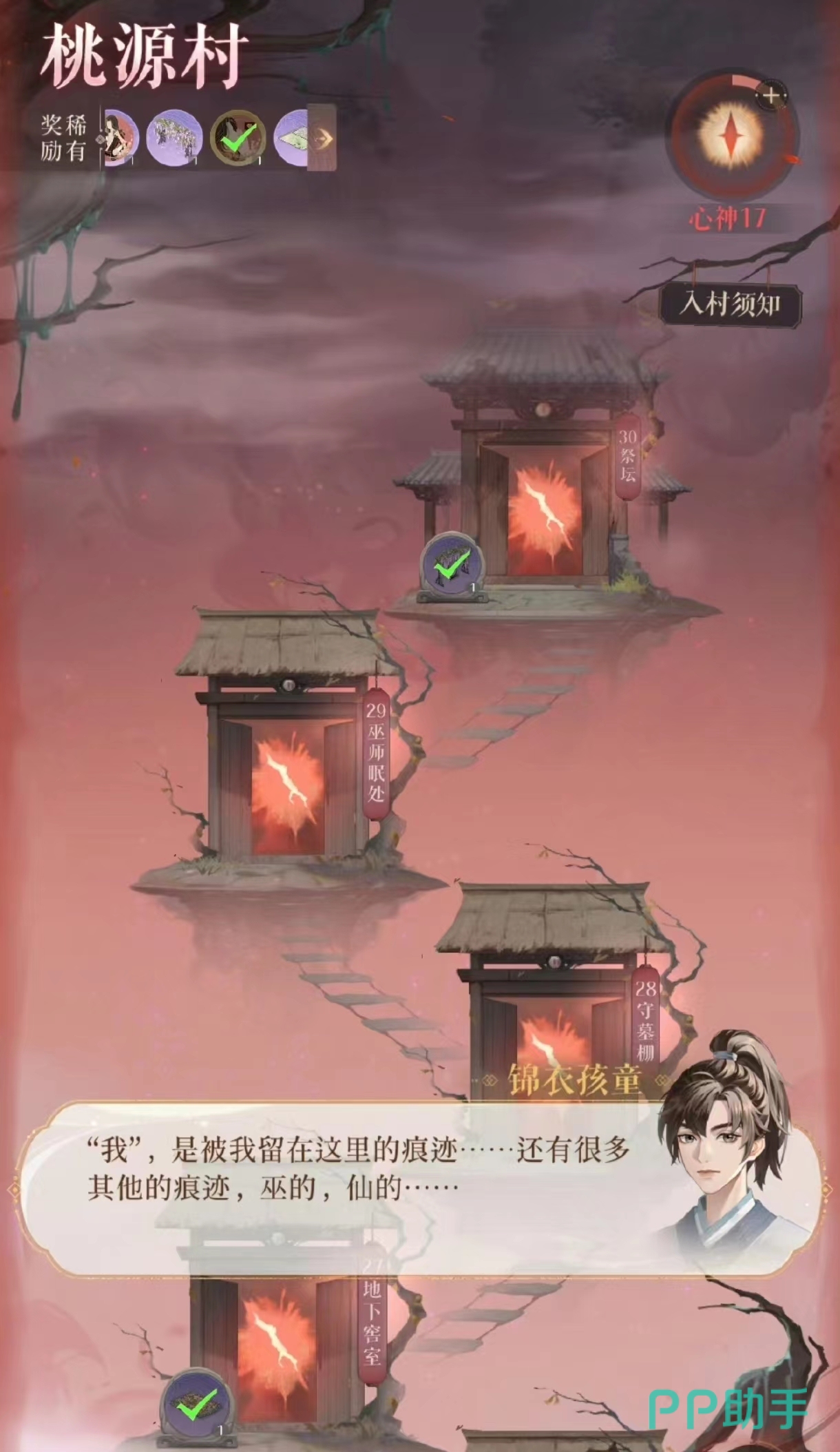 首先玩家进入桃园村后会碰到一个小男孩儿,那个小男孩儿从剧情上我们可以知道是小时候的刘辩。刘辩被张修所救变成了天师道的张道陵。从桃园村混乱的剧情中我们可以知道,在这小小的村落中曾经发生过许多争斗。