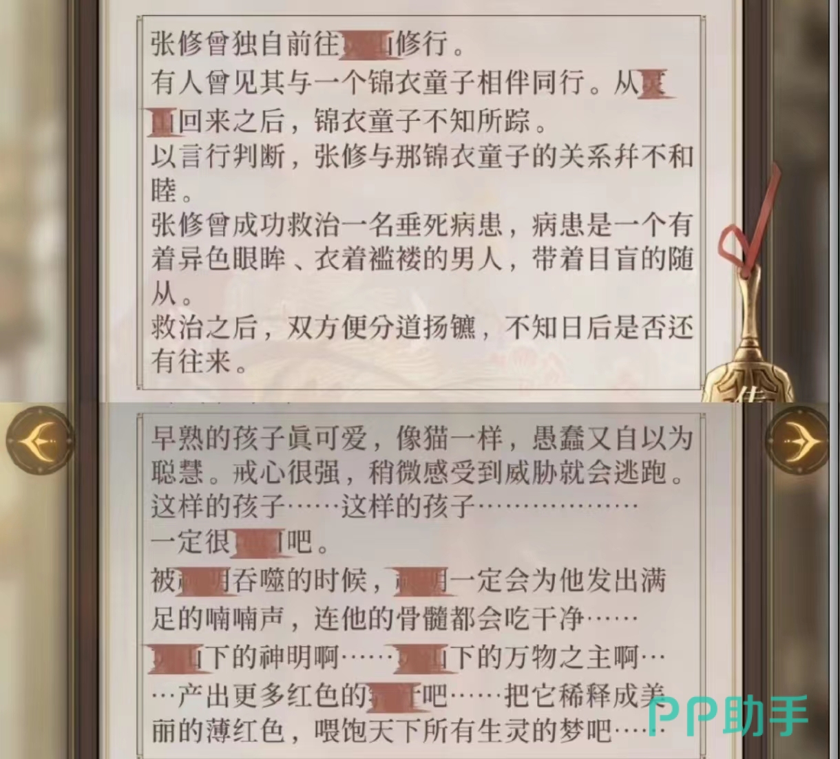 从目前的情报上来看,张修无疑就是鬼城之主,他通过巫术来治病救人,也通过巫术来操纵他人,给别人喂下巫血,达到他不为人知的目的。剧情中的张角,华佗等等都被装修为下巫血。所以作为鬼城之主的张修,在后续剧情中应该还会有大量的出场,玩家可以仔细阅读剧情发掘更多的秘密。