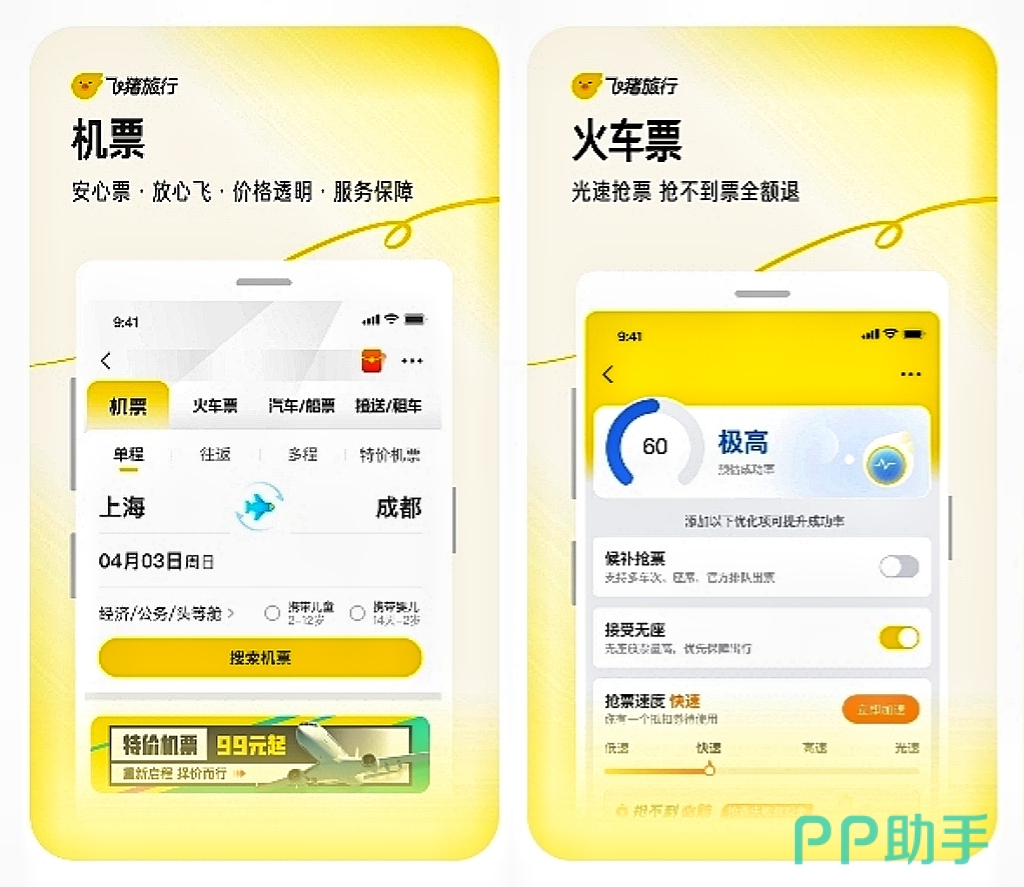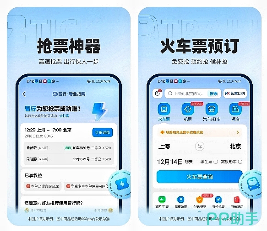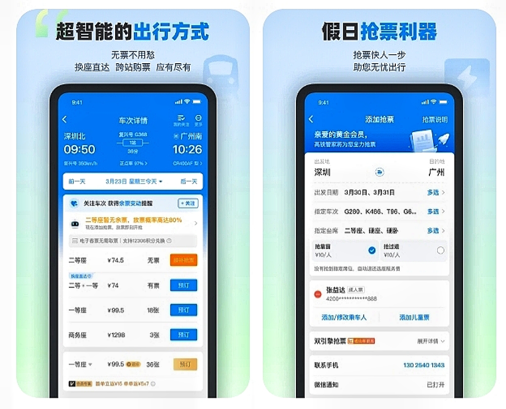 一个票源多,信息更新快的订票app,专门为旅客提供列车动态信息服务。主要以高铁和航班的行程服务为中心,提供车票、机票、汽车票等,可以根据不同年龄段购买相应价格的火车票,有儿童票、学生票、成人票,新用户有福利。