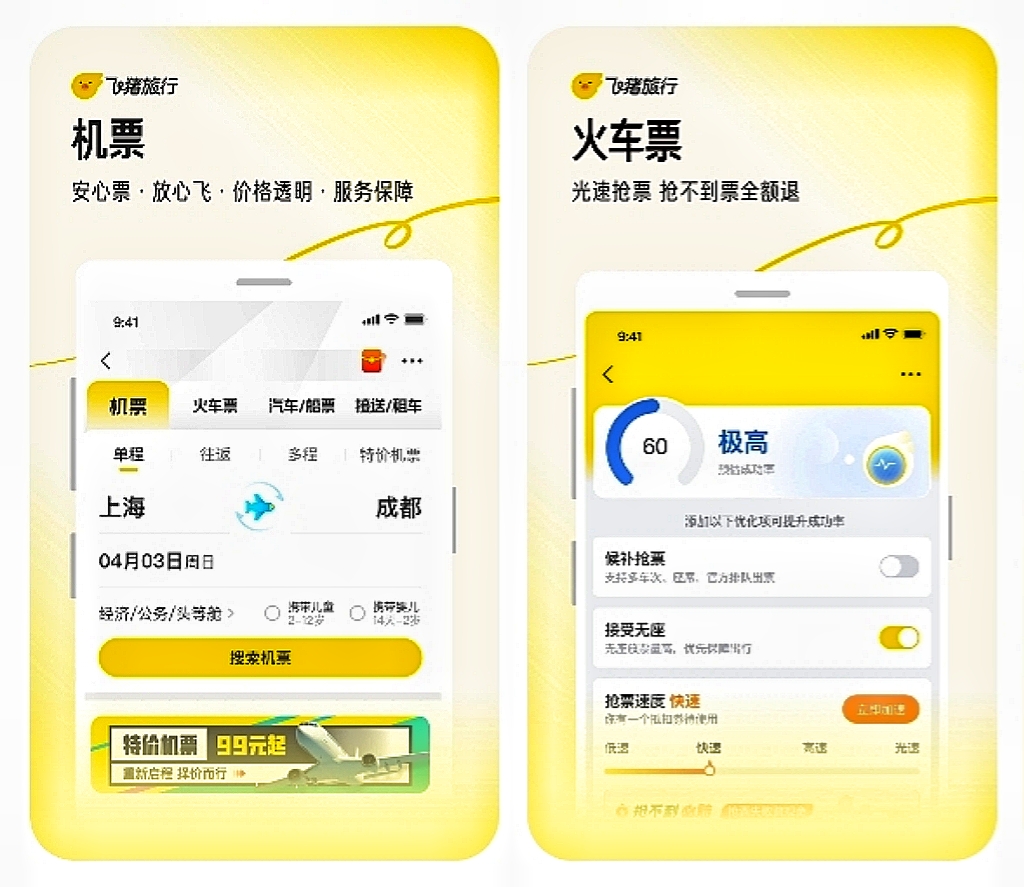 专为购票服务的app,有票可以随时订,没票也有机会抢,不仅是买票的好帮手,也是抢票的神器。除了订票,外出还可以在app上预定酒店和购门票,有许多优惠活动。