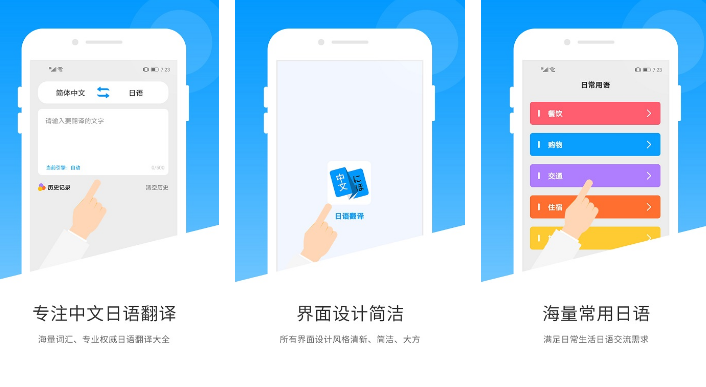 日语翻译是一款非常便捷的翻译软件,拍照翻译,快如闪电,不用打字轻松搞定中文语言翻译,专注中文,日文翻译,海量词汇,专业权威日语翻译大全,界面设计简洁,所有的界面风格清新,简洁,大方,常用日语会满足大家所有的需求。