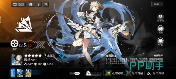 薇丝这个角色她是一个五星水属性的弓箭手,她在游戏中的定位是狙击,也是大家最先获得的一个角色,进入游戏之后,大家就可以免费获得该角色了,她的强度非常的高,当大家获取到她的时候,可以看到该角色拥有非常不错的初始数据面板,因此她在这个游戏中才能排到t0的强度。