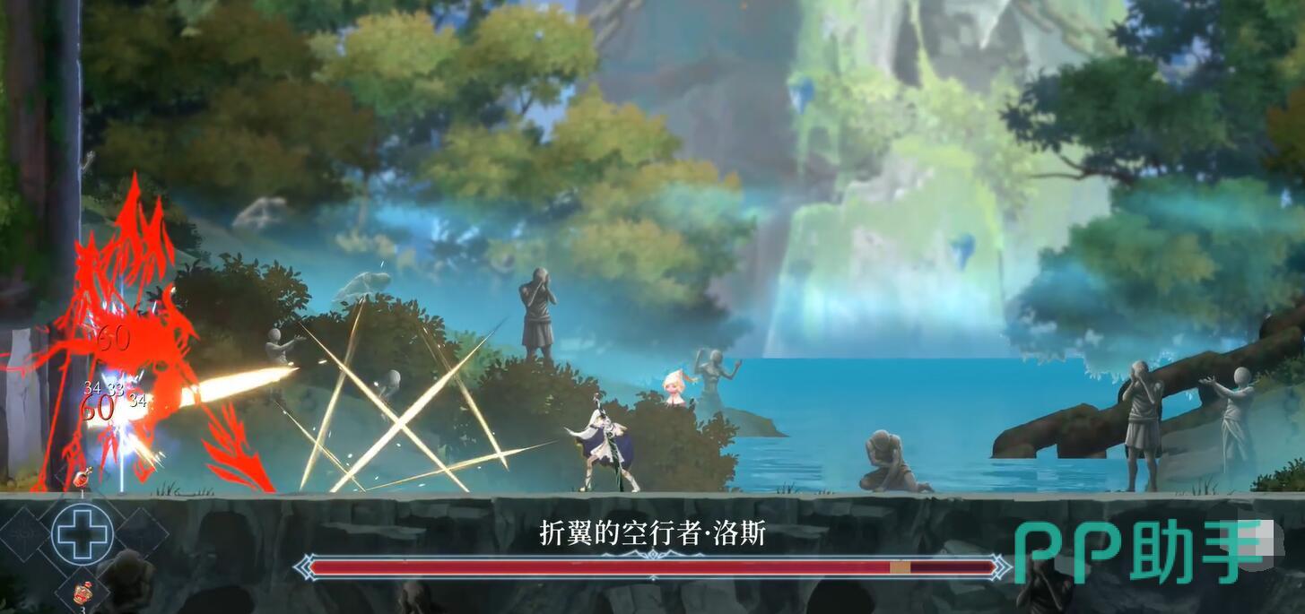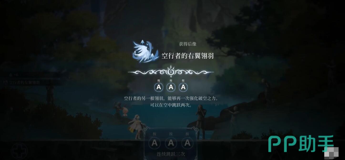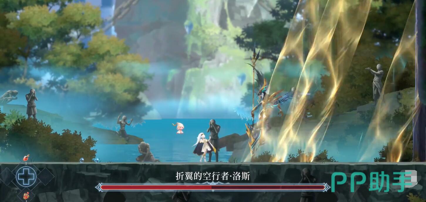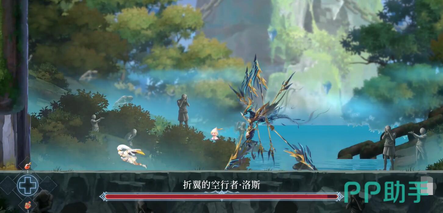 最后,敌人会开始飞入空中对地发起冲刺,此时玩家需要站在原地,当敌人快要靠近的一瞬间朝着反方向移动,避免攻击的同时快速打击boss,很快就会将敌人残余的生命值全部消耗掉,而玩家们这个时候就会解锁空行者的右翼,此时大家就会正式得到高跳能力。