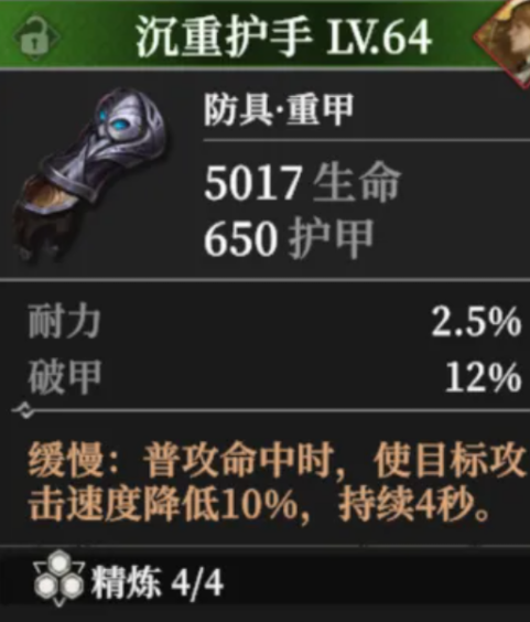 尽管巨人巴姆缺乏高爆发技能,但凭借高频普攻仍能造成可观伤害。因此,组建一支具备高耐久性的队伍尤为关键。推荐配置携带“沉重护手”的角色,以有效削减受到的打击力度。同时,为应对持续作战需求,建议搭配具有治疗能力的英雄,并辅以提供回血支持的秘宝类道具。例如,“春熙神韵”可在关键时刻为全体成员施加回春效果,立即恢复150点生命值,并清除所有负面状态,极大提升团队续航能力。