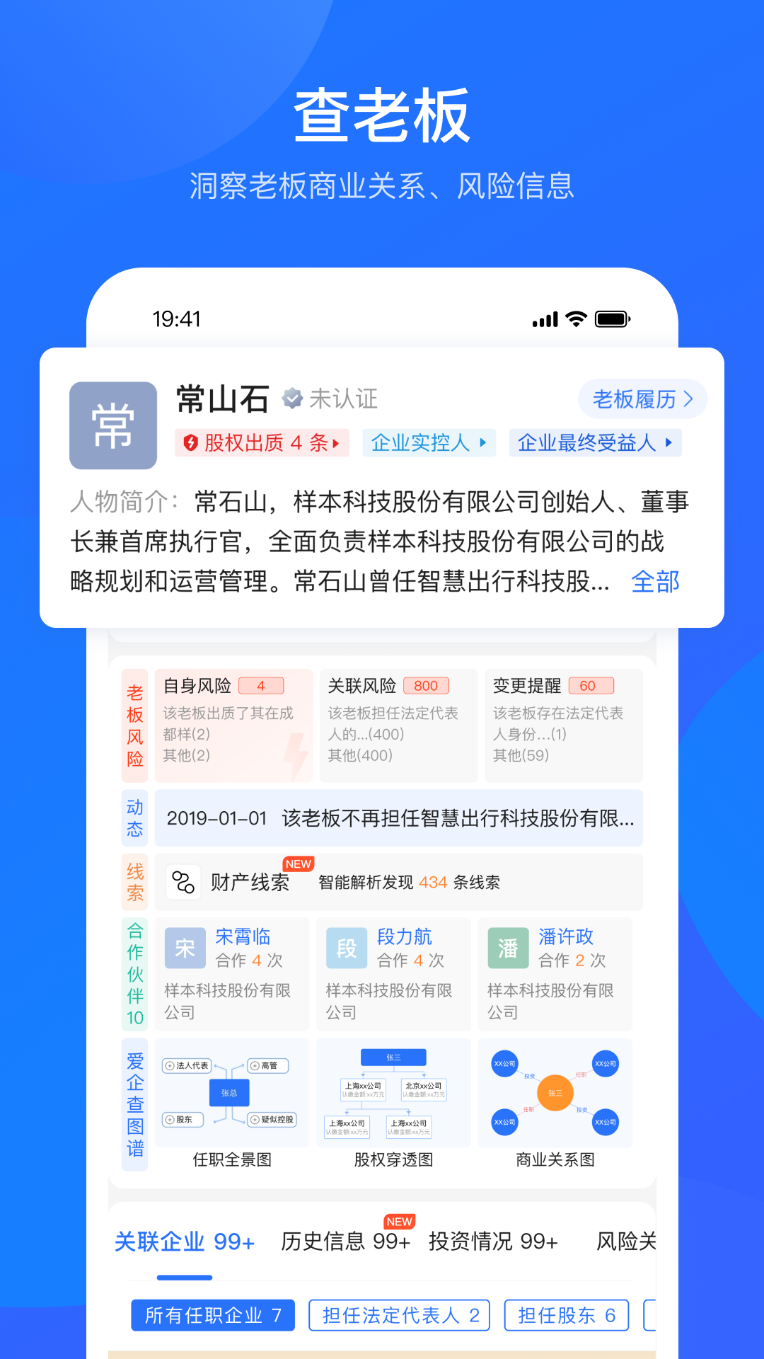 企业老板:了解竞品、合作方公司业务、征信状态等信息