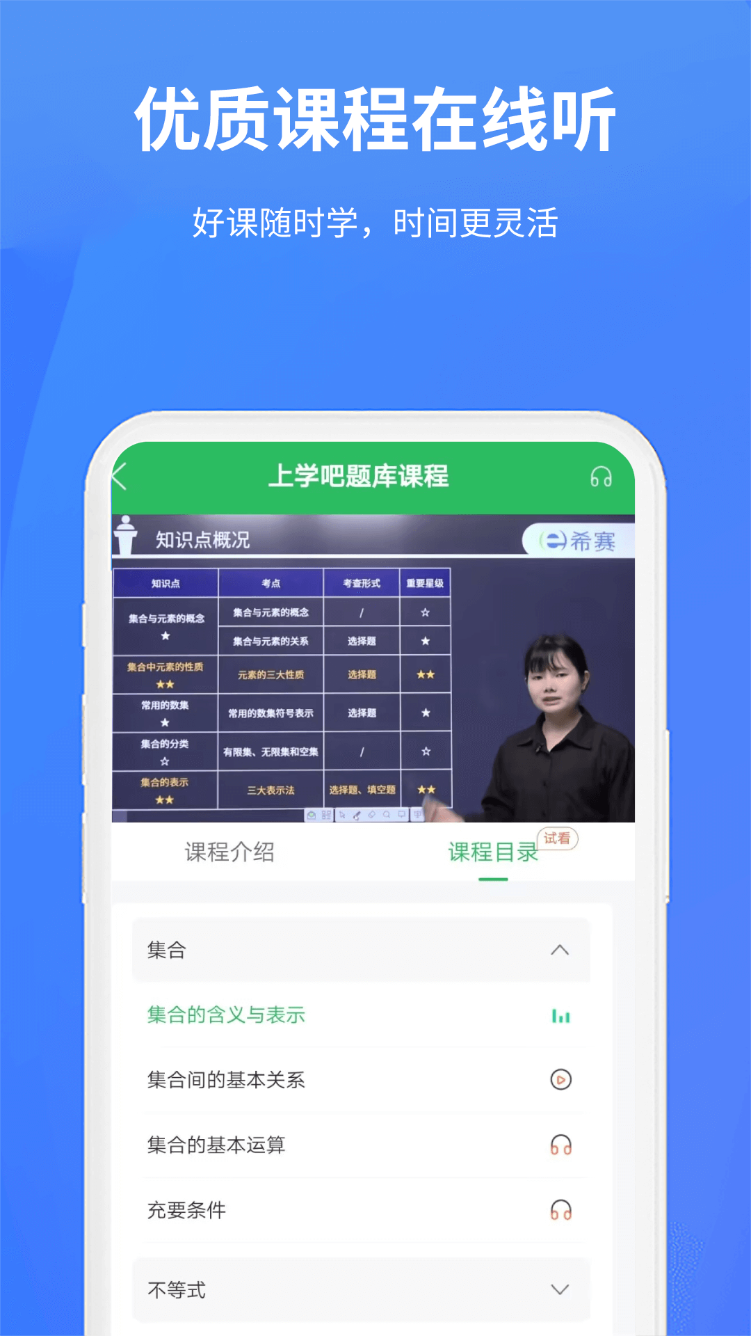 上学吧题库APP中还有对应的网课视频教学课程,可以指导大家复习备考,聘请专业讲师讲解各个考试知识点,帮助大家充分掌握考点内容。