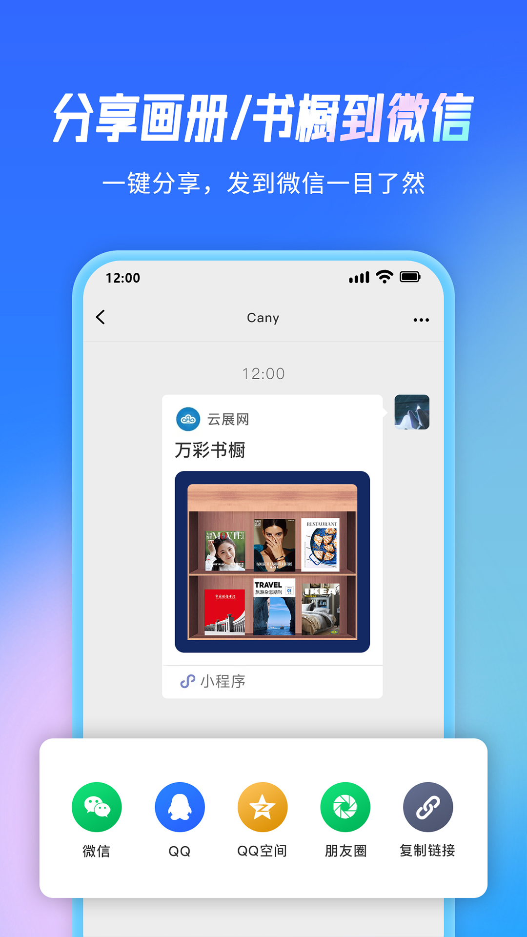制作完成后会自动生成电子画册链接和二维码,可分享到微信、公众号,也可把二维码放到别的宣传物上,客户扫码即可阅读。