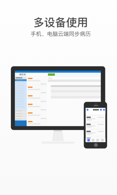不再为繁冗的病历和低效的医患沟通所烦恼。随时随地,从病历到病人的全程智能管理,病历夹(经典版)帮你实现。