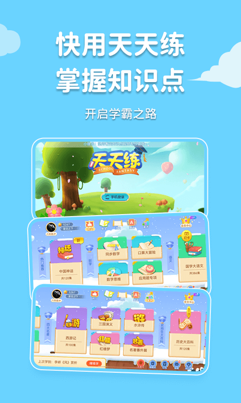 《天天练》由乐乐课堂的一批清华、北大出身的学长们精心打造,倾囊相授学习秘诀,目前已涵盖初中数理化英、高中数理化,以及小学数学、大语文和思维训练等。