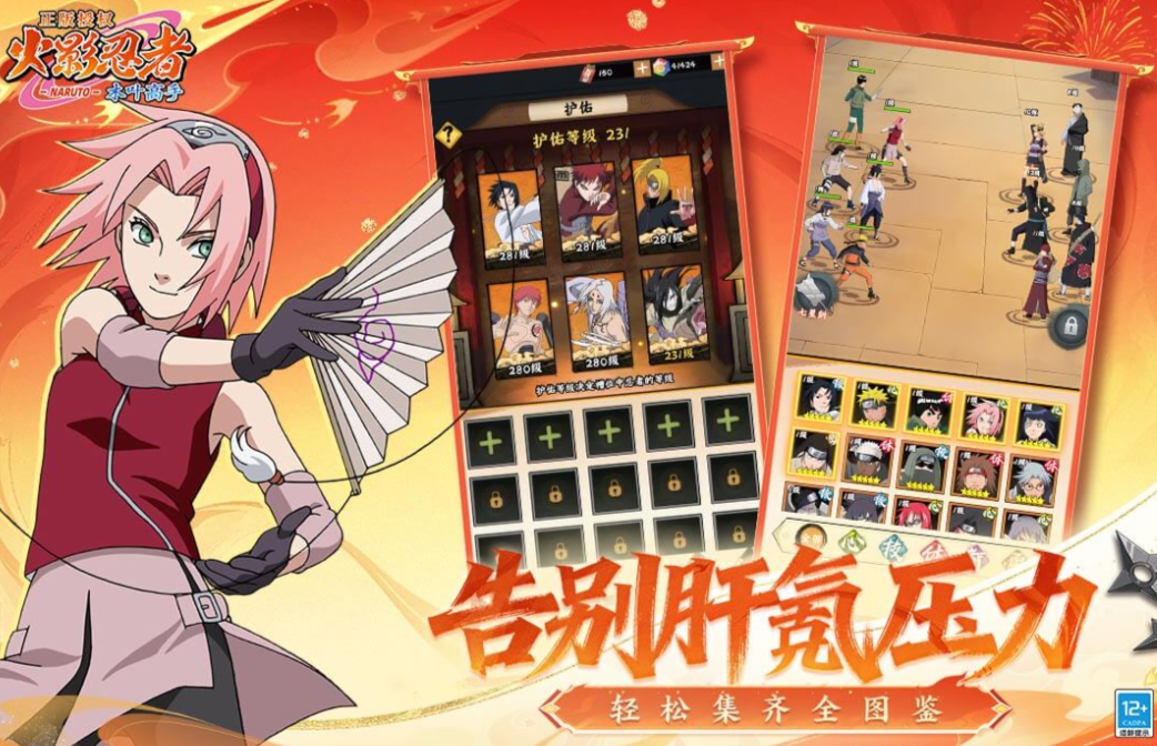 以火影世界观为基础构建的卡牌回合制产品,主打“不肝不氪”设计理念。主线剧情原创性较强,在尊重原著设定前提下拓展支线叙事。卡组构筑逻辑清晰,战斗节奏迅捷,支持忍者站位预设与自动推图,降低操作负担的同时保留策略决策空间。角色人设辨识度高,技能动画富有张力。