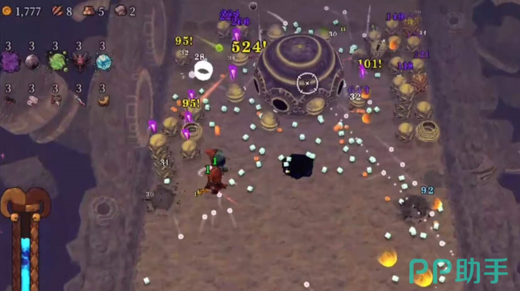 顽固老兵的弹珠具备全程穿透特性,在首次接触墙体前可贯穿任意数量敌人,大幅强化群体压制能力。鞭笞者的机制聚焦于底部区域物理反射——该区域被设定为类墙体结构,使弹珠可在中下区域反复弹跳,形成高密度伤害覆盖,输出稳定性与持续性表现突出。