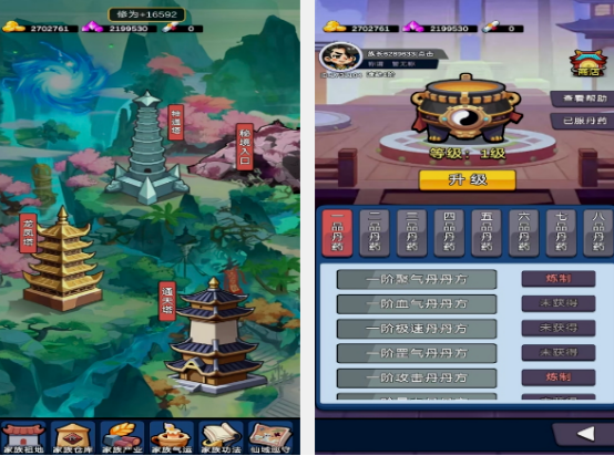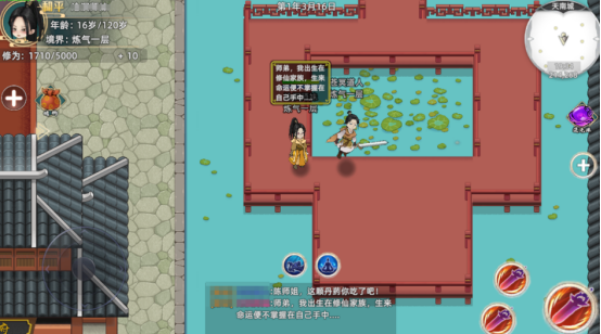 以Q版像素风呈现宗门经营全过程。玩家化身开山祖师,通过点击式交互招募弟子、分配功法、安排历练。弟子需经历筑基、金丹、元婴等阶段并完成天劫考验,宗门规模扩张依赖人才储备、资源产出与功法体系完善度三重平衡。