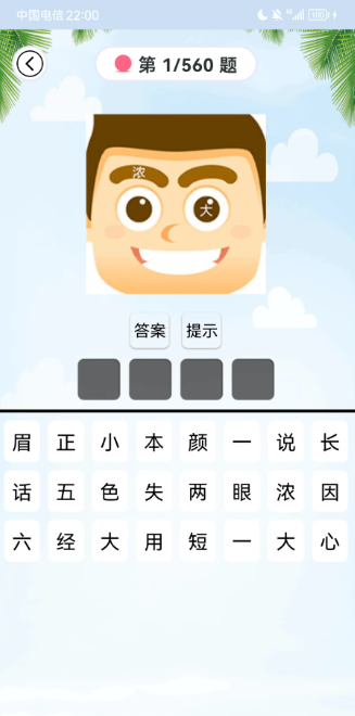 界面清爽无干扰,关卡数量充足,每关呈现一张具象化插画,目标为准确填写对应四字成语。图文映射关系清晰自然,依托常见生活场景与文化符号构建联想路径。无需记忆复杂规则,仅需输入文字完成验证。随着通关进度推进,成语储备量同步增长,在休闲放松中潜移默化提升语言感知力与传统文化理解力。