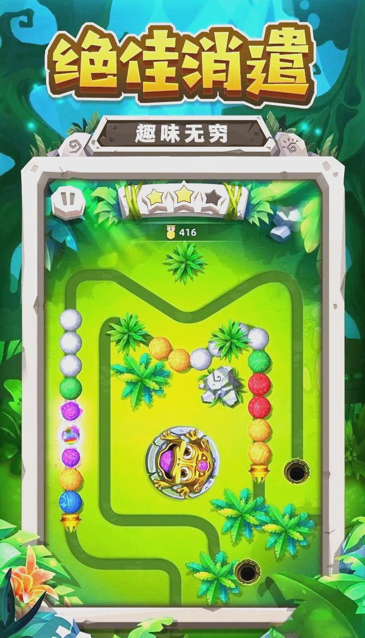 延续祖玛系列经典消除内核,依托彩珠排列逻辑与连锁消除机制营造高频正向反馈。关卡设计持续注入变量——新增障碍类型、动态轨道、限时连击判定等要素,在基础规则不变的前提下拓展策略纵深。玩家需综合考量发射角度、弹道预判与步数规划,在有限资源约束下达成最优解。整体美术采用高饱和度配色方案,音效响应短促清亮,形成即时、稳定、可预期的操作回馈闭环。