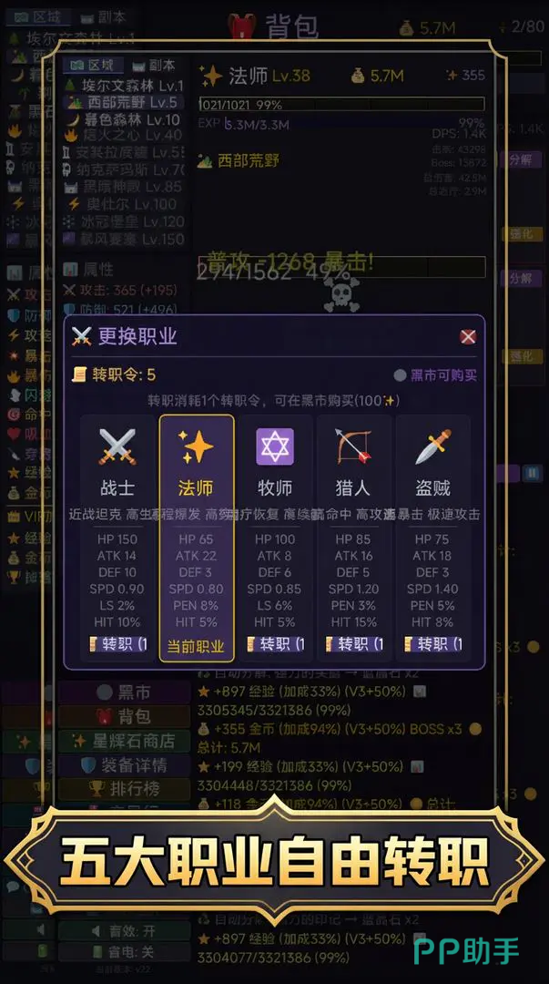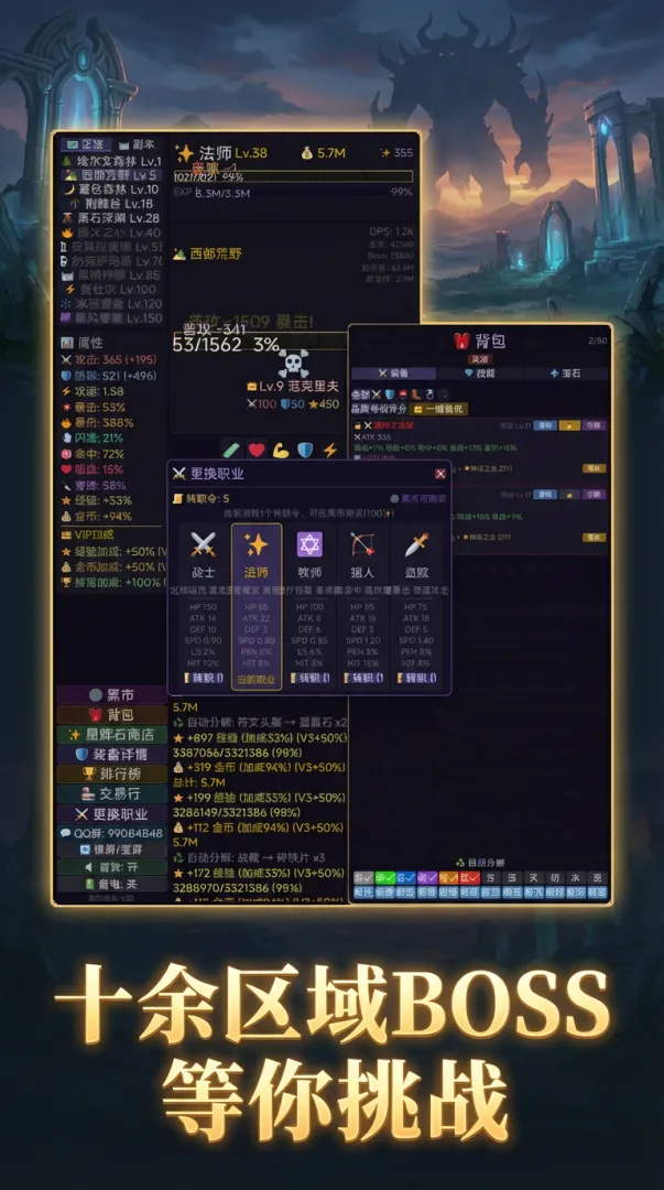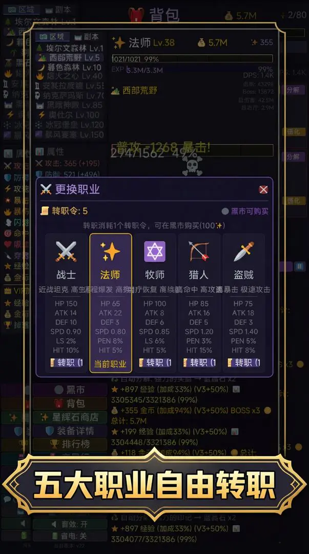 游戏提供五大初始职业:战士、法师、牧师、猎人与盗贼,全部支持自主转职路径。战士职业定位均衡,近战生存能力强,上手友好,适合新手入门;法师职业专注远程群体输出,爆发显著,需一定操作预判能力;牧师为核心辅助角色,擅长治疗与状态恢复,显著提升队伍持续作战能力;猎人以高攻击与高命中为特色,兼顾单体压制与灵活走位;盗贼则主打高速连击与暴击伤害,输出节奏紧凑,操作上限高,属于高难度高收益型职业。角色成长过程中,可通过收集多样化装备并组合搭配,定向强化属性,实现战力阶梯式跃升。