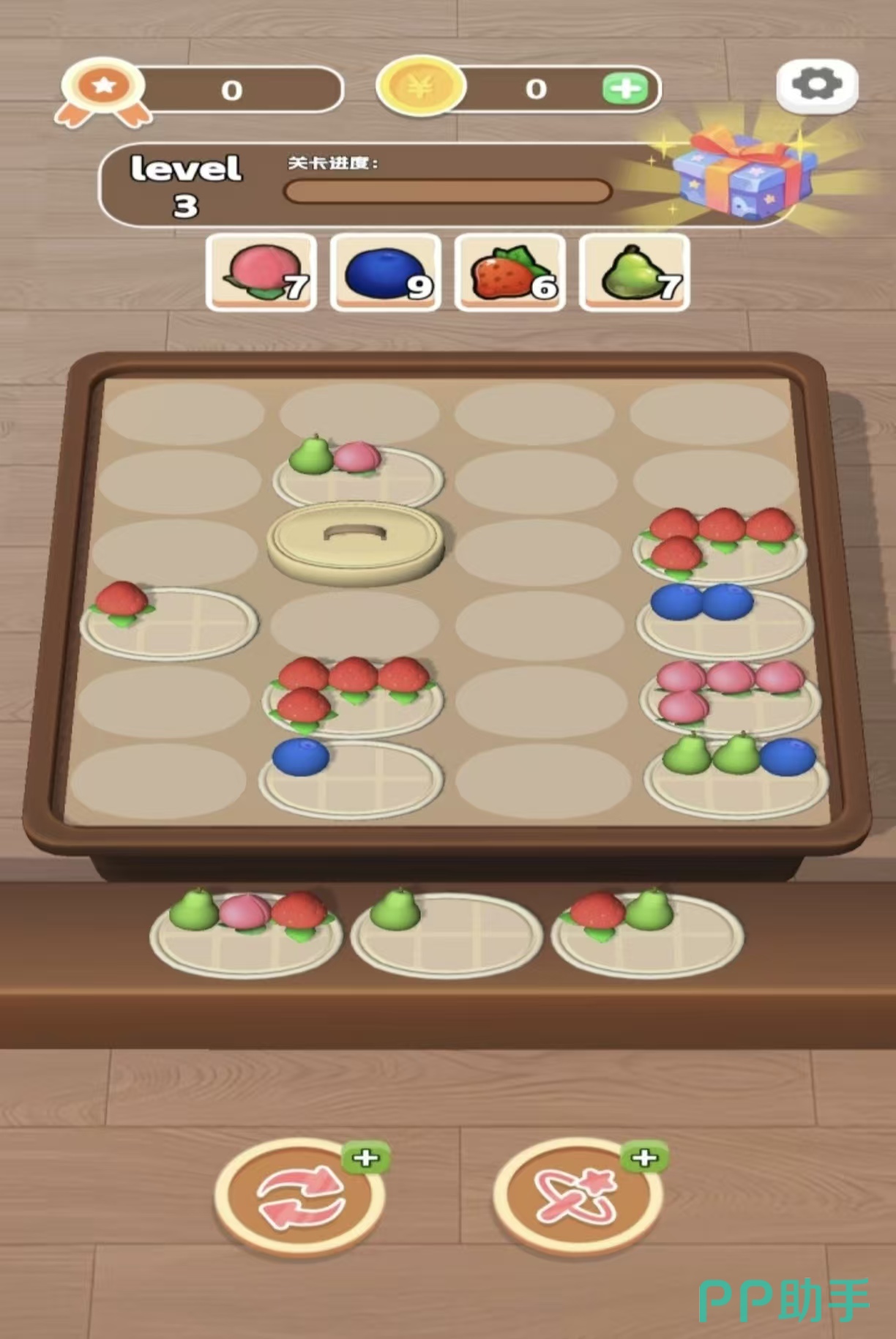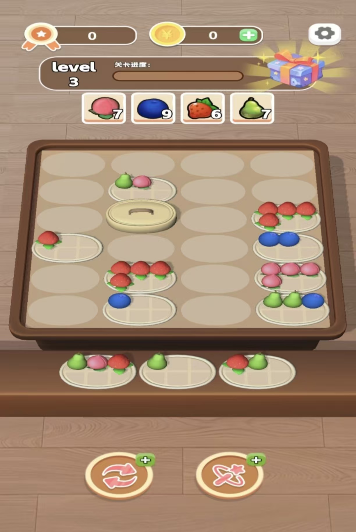 以真实水果为视觉主体,强调操作反应与逻辑预判的双重考验。关卡中需将同类水果拖入对应果盘完成合成,界面顶部实时显示目标种类提示。支持刷新重置功能,单局时长控制在1–2分钟内,适配碎片化娱乐场景。UI布局简洁直观,色彩搭配清爽自然,无复杂交互层级,上手门槛低但深度策略空间充足。