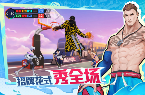 采用次世代卡通渲染技术,动作捕捉系统还原真实篮球物理反馈。主打3v3实时对抗,涵盖生涯模式、排位赛、娱乐赛等多种对战场景。战术维度突出,需根据球员特性(如控卫组织、大前锋篮板、得分后卫投射)动态调整站位与技能释放节奏,在快节奏攻防中体现策略深度。