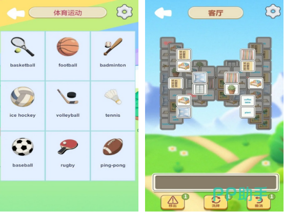 本作以图像联想为核心教学逻辑,覆盖蔬菜、体育、日常用品等高频生活主题词库,每张配图均精准对应一个基础英语单词。玩家通过拖动图片完成匹配任务,在趣味消除机制中强化单词识别与记忆。关卡设计由浅入深,兼顾拼写辨识与语义理解双重训练目标。