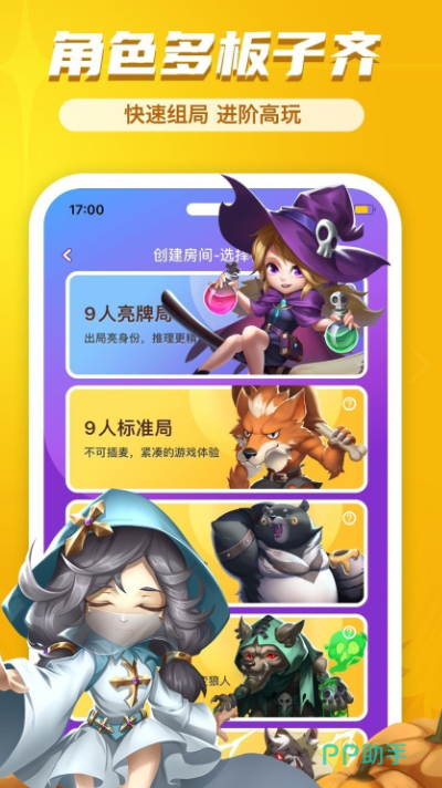 专为实体空间聚会定制开发,强调面对面交互体验。支持本地Wi-Fi直连或蓝牙组网,实现零延迟语音与视频互通。角色池覆盖近30种差异化身份,包括预言家、女巫、猎人等经典设定及原创扩展角色,玩家可自主选角而非强制匹配。提供“经典八人局”“极速五人局”“欢乐乱斗局”等多种模式,适配不同人数与时间需求。首页集成新手教学动画与规则速查面板,帮助新玩家三分钟内掌握核心流程。