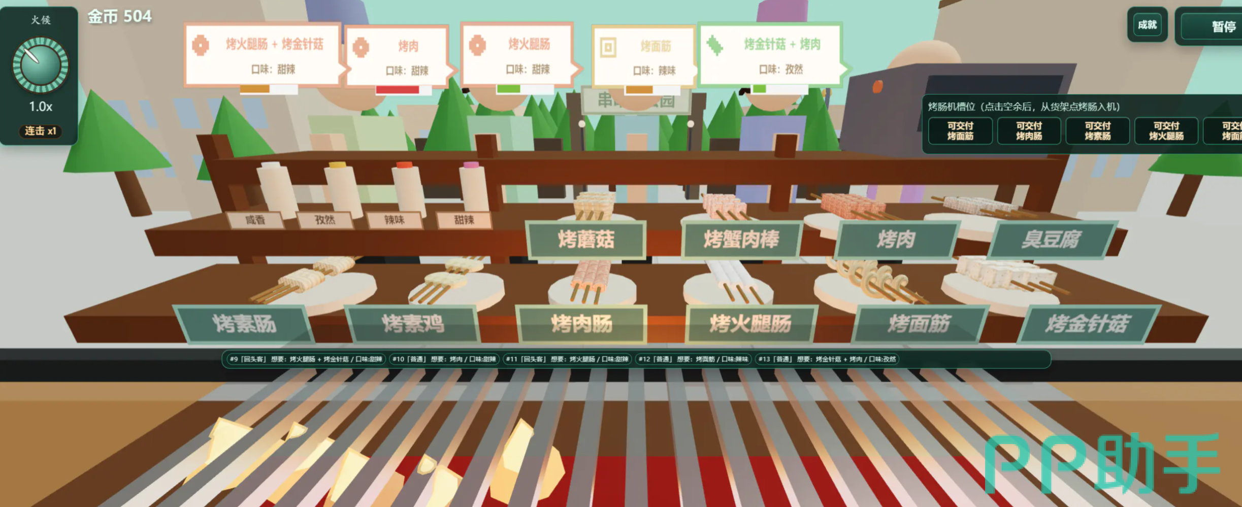 高度还原市井烟火气的模拟经营作品,主打轻松治愈的怀旧氛围。从采购新鲜食材、腌制串品、控制火候到服务顾客,全流程自主操控。随等级提升逐步解锁秘制酱料、特色烤架、招牌菜品及店铺装潢选项。完成每日营业目标与限时挑战任务,可获取金币、声望与稀有装饰道具,助力摊位向网红小店进阶。