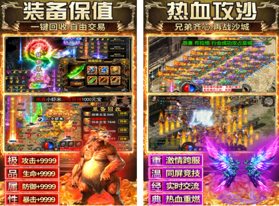 延续三大职业设定(战士、法师、道士职业),融合沙巴克攻防战、世界BOSS争夺、跨服帮战等高密度PVP内容。支持离线挂机成长体系,角色可自动完成日常任务、副本刷怪及经验获取;装备强化、技能树进阶、神兵锻造等系统模块完整,满足长期养成需求。
