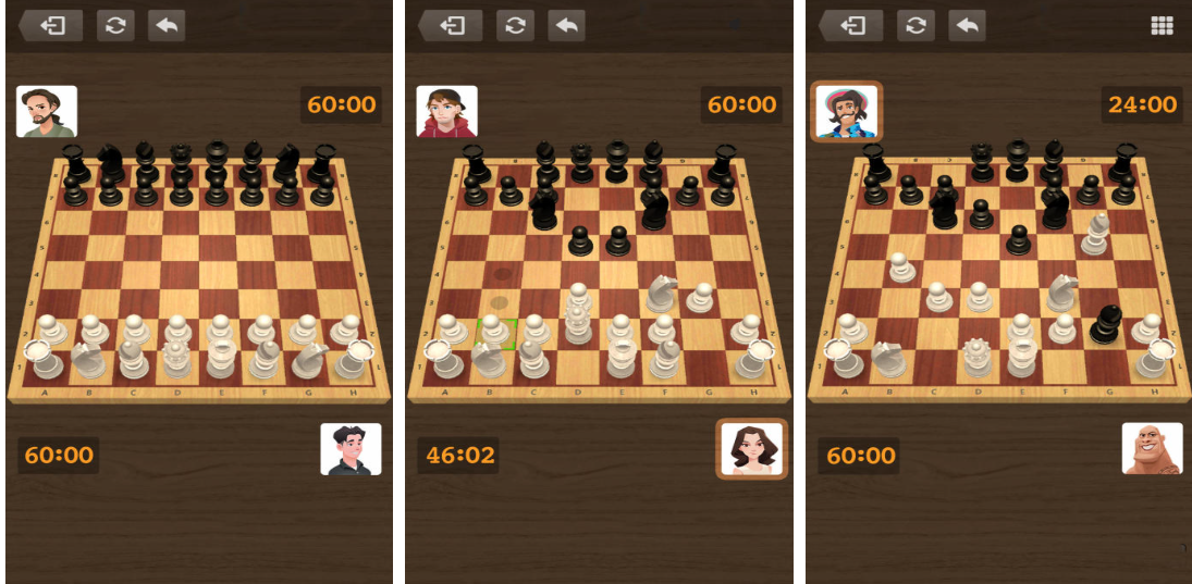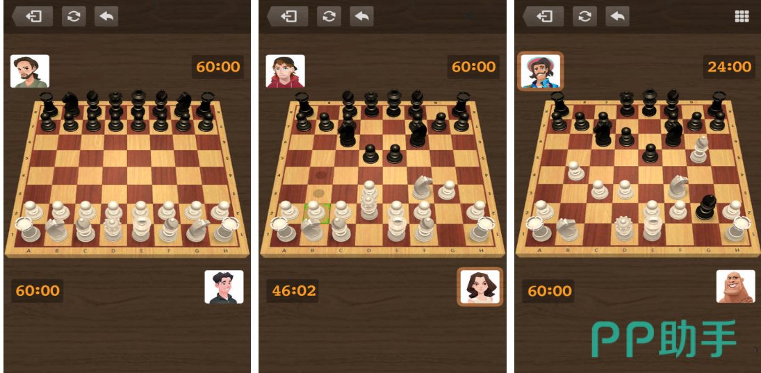 采用全3D建模棋盘与棋子,支持自由旋转视角;黑白双色棋子对比鲜明,王、后、车等单位造型符合FIDE标准;内置ELO评级系统与AI难度分级(共8档);每步操作均有合法提示与威胁预警;支持PGN导入导出,方便复盘与教学使用。