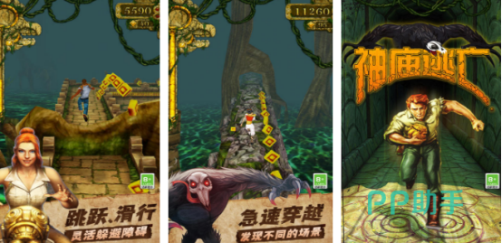 本作为经典无尽跑酷玩法代表作,设定于神秘古文明遗迹场景。玩家需持续向前奔跑躲避坍塌结构、跃过断崖、滑行穿越狭窄通道,并同步收集散落金币与特殊道具。操作逻辑高度简化:左滑转向、右滑闪避、上滑跳跃、下滑滑铲,辅以手机陀螺仪实现倾斜转向,降低上手门槛的同时保障操作响应精度。