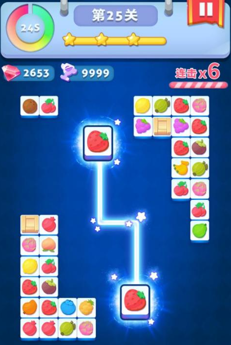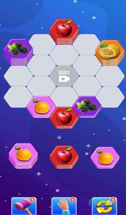 本作采用创新六边形网格布局,在传统消除玩法基础上拓展出更多相邻连接路径,显著提升组合自由度与策略空间。内置三类功能性道具:爆炸果可清除周围3×3区域,交换果支持任意两枚水果位置互换,清屏果则能一次性移除当前界面全部同色水果。蜂窝状棋盘结构使画面层次清晰、色彩分布均衡,视觉信息丰富但无压迫感。