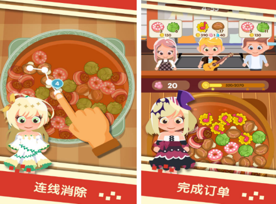 融合火锅文化与三消玩法的创新作品。玩家扮演串串店店主,需通过点击相同食材完成横向或纵向三连及以上消除,快速响应顾客点单。同时收录多位风格各异的可爱女性角色,支持收集与养成。每完成一单即可获取金币,用于升级厨具、扩展店面与解锁新串种。