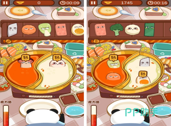 这是一款画风明快的卡通向火锅主题手游。游戏内设常规食材与稀有神秘食材双线解锁机制,玩家可通过挑战关卡逐步开放新种类。核心玩法为“投放—等待—确认熟成”,当食材在锅中完成加热后,界面将明确显示“熟”字提示,强化反馈节奏与成就感。