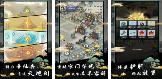 玩家以开山立派的祖师身份入局,主导宗门从无到有的全过程。游戏内设资源采集、建筑扩建、弟子招募四大核心模块,弟子品质划分为出众、卓越、绝世、逆天四档,不同资质影响其修炼效率与技能成长。宗门设施可随发展逐步升级,涵盖炼丹房、藏经阁、演武场等功能区域,形成闭环式经营生态。