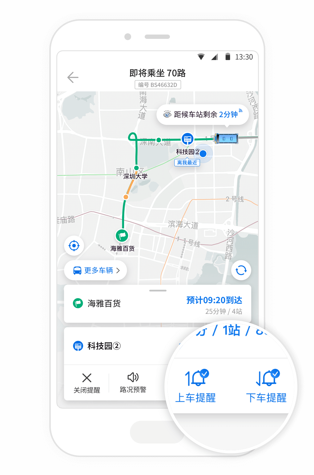 《车来了》集成了实时公交追踪、多策略路径生成、上下车智能提醒三大核心能力。无论身处本地还是异地旅游,均可快速获取目标线路车辆当前位置、剩余到站时间及车厢满载状态提示。乘车过程中启用下车提醒后,系统将在车辆即将抵达设定站点前启动语音播报,全程无需手动干预,操作简洁高效。