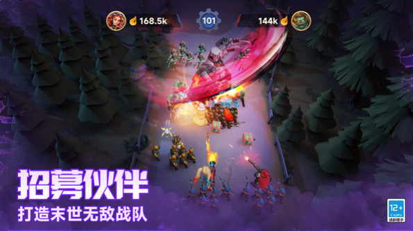 长期成长体系完整覆盖多条养成线:枪械可逐级强化基础属性,宝石系统支持属性定向嵌套,佣兵模块于40级解锁——玩家可通过酒馆招募各类战术型佣兵,其中免费佣兵经碎片收集可升至顶级品质,付费佣兵则提供专属机制加成。每场战斗可编队两名佣兵,与机甲、炮塔共同构成三层战术矩阵。整体美术采用暗黑废土风格,配合紧凑压迫感音效,强化沉浸式末日生存氛围。