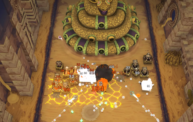 为了增强游戏的趣味性,在挑战的过程中程静虽然在不断变换,但整体的玩法依旧主打的是对抗游戏里的怪物,面对各种失落城堡以及废墟,玩家要在游戏里寻找价值连城的宝藏,还有对抗游戏里的各种野蛮生物,弹珠加上基地建设以及打砖块元素的融入,让每个场景都可以在横屏场景中体验到竖屏对战,弹珠撞击到敌人或者周围墙壁之后会反弹的设定,能让每一次攻击都产生更强的战力,建议玩家在游戏里多去修改不同的角色,找到最适合自己的战斗成员,接着在利用不同的弹珠,增强自身的战斗能力。