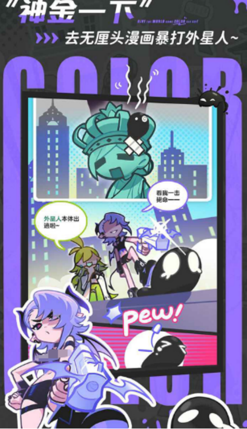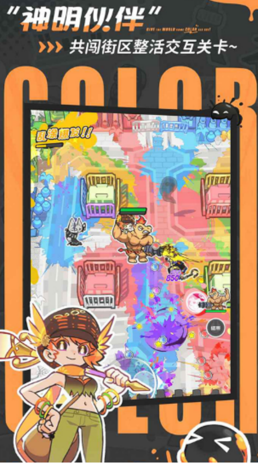这款超级有趣的涂色游戏,以弹幕射击为题材,整体相当解压,将带你探索别致的潮酷风格,玩家化身成为染色小队的成员,与性格不同的神明们共同并肩作战,而通过滑动手指的方式完成战斗,将被外星人入侵的黑白世界再次重新找到五彩缤纷的色彩,将享受充满趣味的冒险旅程。游戏也并没有严重氪金的情况,所有玩家都可以在这里享受无压力的养成系统,全员都采用共享进度,这样的养成机制,你培养的主力角色资源会直接用到全队身上。