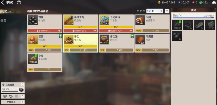 当玩家的船只等级到了30级以后,在跑商时选择性就更多了,这时大家可以直接选择贵金属,而跑商的航线则以欧洲热圈的港口为起点,购买高级的工艺品和军火航行到东非沿岸售出,在从当地购买红蓝宝石以及麝香等重要资源返回欧洲售卖。