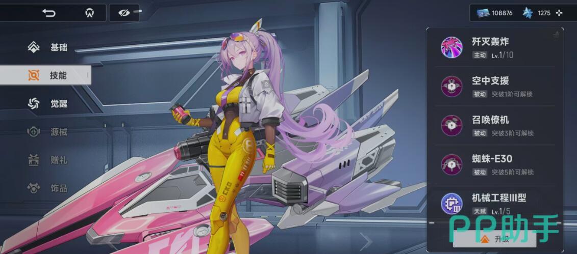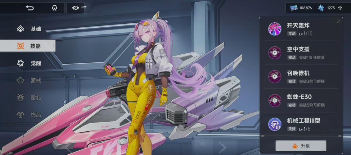 角色成长路径清晰明确:一阶突破解锁【空中支援】,显著扩大轰炸覆盖半径并延长持续时间;三阶突破激活【召唤僚机】,为无人机提供稳定增伤加成,进一步强化【歼灭轰炸】的实际输出效能;五阶完成时,火力系统全面升级,整体DPS与AOE稳定性达到峰值,成为中后期主力阵容的关键支点。