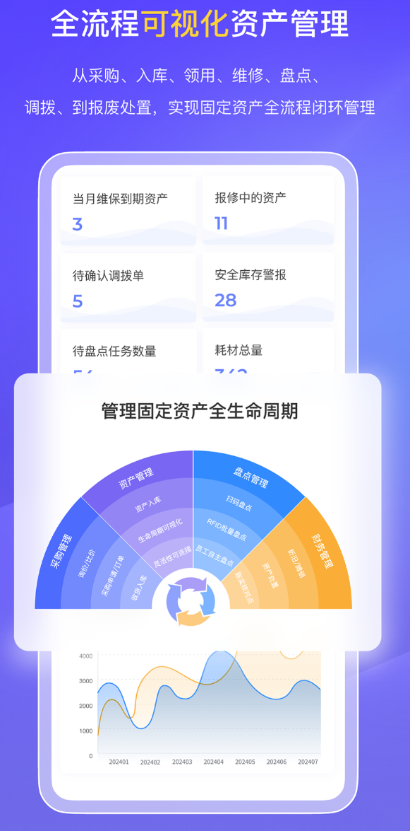 专门解决固定资产,账实不符的老大难问题,利用远距离识别技术,隔着好几米就能批量盘点,一秒钟扫上百个资产,把繁琐的清点工作,变得特别轻松。不仅能打印标签,还自带了安全监控功能,要是有人违规把资产带出门,系统立马就会报警提示。审批流程,可以按照自己公司的习惯来设定,不管是多部门会签还是单独审批都支持。生成的数据图表直观清晰,方便管理者随时掌握资产状况。