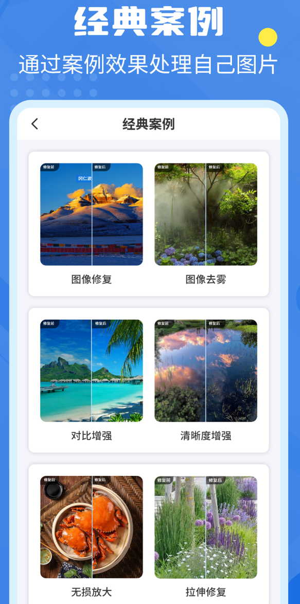 老照片破了或者颜色不对,用它修下效果明显。划痕褪色泛黄都能处理,细节慢慢补回来。黑白照片变彩色,颜色看着自然。模糊的自拍也能弄清晰,拉伸变形的校正好位置。修完还能加点妆容,瘦脸美白,随手弄出好看的版本。家庭老照片翻新特别合适,操作简单,点下就行。珍贵记忆重新清晰,拿出来看心情都好。