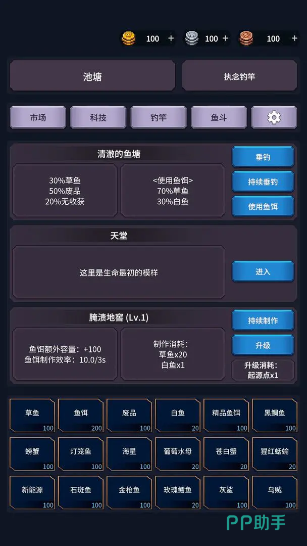 游戏包含丰富的收集元素,玩家可从一开始家乡渔村开始,逐步解锁科技,获得新的钓竿、钓饵、存钱罐等物品,前往更广阔的海域挑战传说海怪、打捞失落宝藏,获得的物品,还可以拿到交易市场中进行交易,获得铜钱来购买有用资源。
