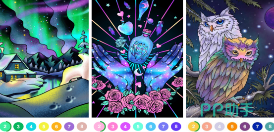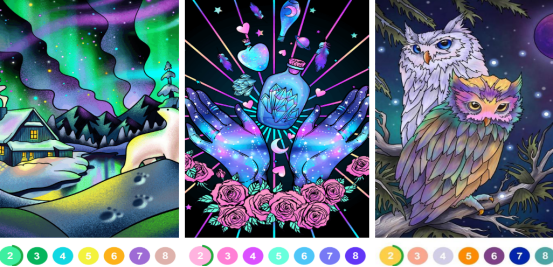 在这里也将享受非常别致的绘画游戏,提供大量带有数字的标记以及线稿图案,用户只需按照相应的数字顺序,点击即可完成作品,并不需要任何绘画技巧,这是传统填色图书的数字升级版本,帮助众多玩家轻松解压,放松身心。