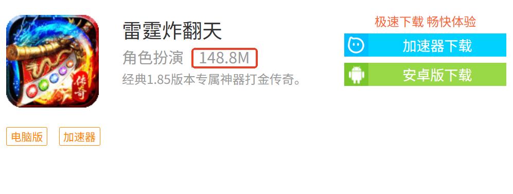 传奇微变类的手游有很多,其中不少体量并不大,内容也不多,有玩家询问雷霆炸翻天游戏内存多大,这里询问的内存多大,更多是指它的游戏大小,也就是安装包大小,这个其实在九游对应的专题页面是有展示的,这里便和大家说明一下。喜欢该手游的也可以直接去九游app下载,它可是手游福利最多的平台。