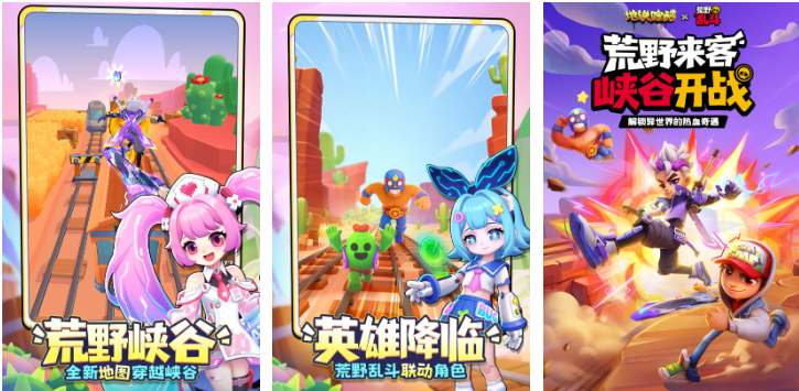跑酷游戏爱好者一定认识这款启蒙之作吧,这是款拥有三维萌系风格的免费跑酷神作,跑酷主题的特殊概念加上超快节奏都是亮点,更多的角色可以解锁也有着千奇百怪的辅助跑酷道具,与荒野乱斗进行联动后推出的各种模式更好玩,有着三人联机进行跑酷的特殊玩法代入感十足。
