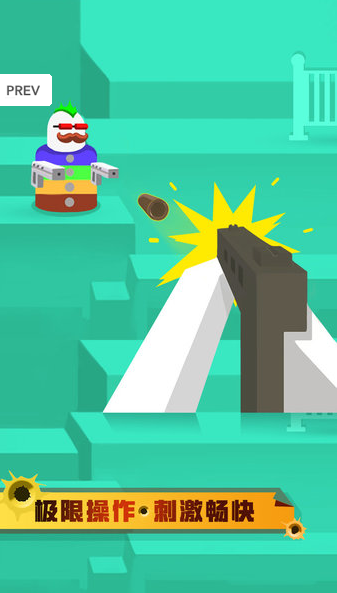 游戏的玩法很特别,不是站着不动射击,角色会一直连续跳跃,大家需要实时的调整枪械的角度,在跳跃的间隙完成狙杀。每次成功打中敌人都会获得很大的增益效果,越打越准,高度也越来越高,形成一个良性的循环。它还有一个部位伤害的玩法,打头部能够获得三倍的爆发式跳跃,打躯干就是普通的高度提升,打四肢能获得一点点的助推,刚开始玩的时候总是掌握不好节奏,在跳跃的状态下很难瞄准,多练几次之后就能找到感觉,这种玩法比普通的射击更有挑战性。