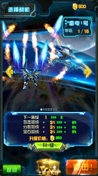 游戏里很多星球都被外星势力占领了,只有大家的星球没有被侵扰,还保持安静祥和的样子。大家的任务很简单,就是驾驶雷霆战机和这些外星人对抗。操作也很简单,没有复杂的按键,只要灵活的控制战机的方向,火力会自动的发射,不需要手动一直点,打起来很顺畅。看着敌机被消灭,心里就很解压,平时还可以升级自己的战机,接受更强的战力,慢慢的提升实力,等着和外星人的终极对决。既可以感受到守护星球的荣耀,还能体验到和外星人对抗的刺激。