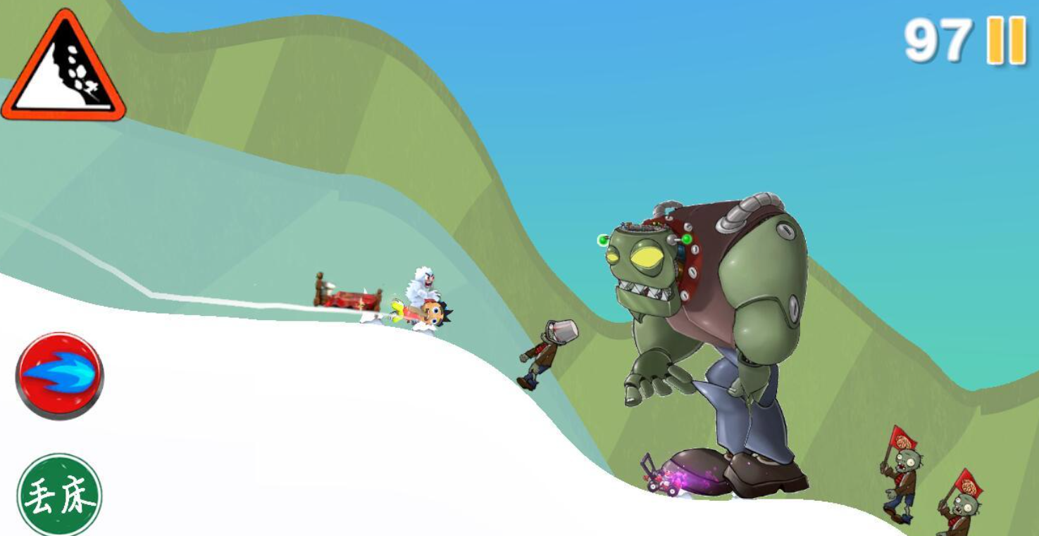 融合塔防与跑酷机制的创新滑雪题材作品,玩家在滑行过程中需规避追击的僵尸单位,并利用床板等道具进行反击。关卡设计强调节奏变化与策略预判,UI采用鲜明卡通风格,图标识别度高,操作反馈及时,为传统滑雪跑酷注入新鲜玩法维度。