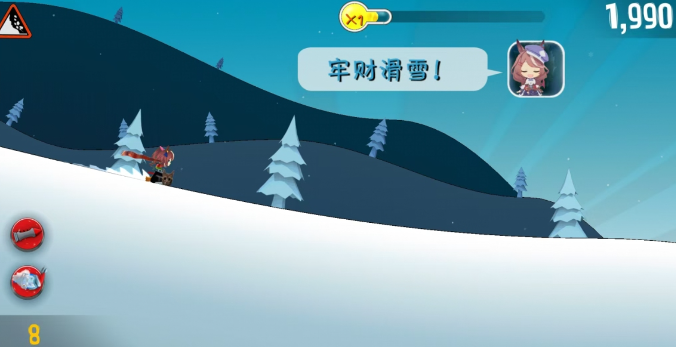 二次元画风的滑雪跑酷变体,主角设定为Q版女性角色,保留核心点击跳跃机制,同时加入大量风格化动作演出。角色语音采用娇俏声线,配合轻快BGM营造休闲氛围;动作组合丰富,连击反馈明确,观赏性强,适合偏好轻松节奏又注重操作反馈的移动端用户。