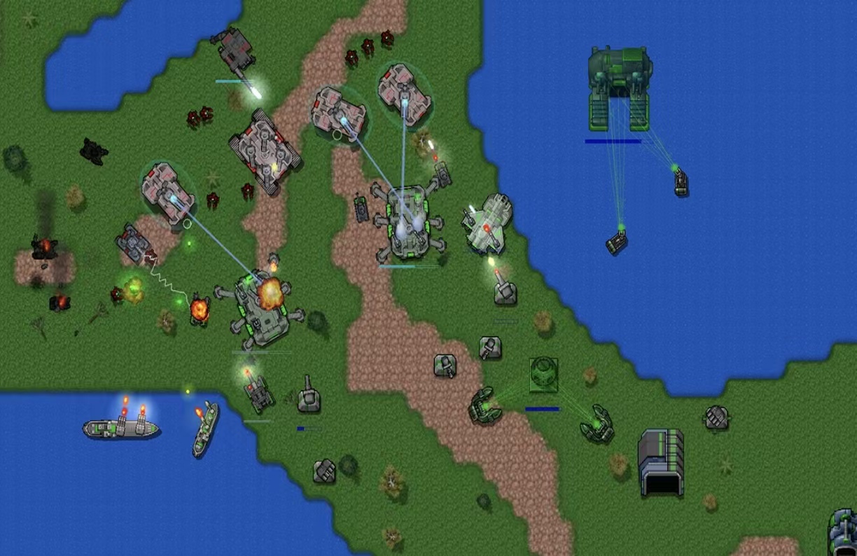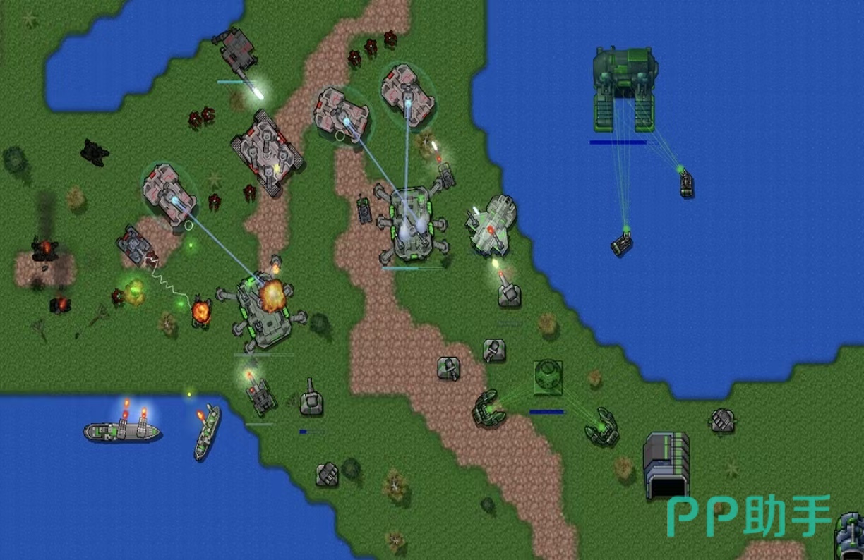 采用复古像素美术风格的即时战略游戏,构建于广袤的陆海复合地图之上。玩家从零开始建设军事基地,发展工业链、拓展农业产出、招募并训练多样化兵种。战役关卡设计强调战术预判与资源调度,支持自定义房间创建与跨平台联机对战。武器系统还原真实载具性能参数,涵盖坦克集群突击、舰艇火力覆盖及空优争夺等多维作战维度。
