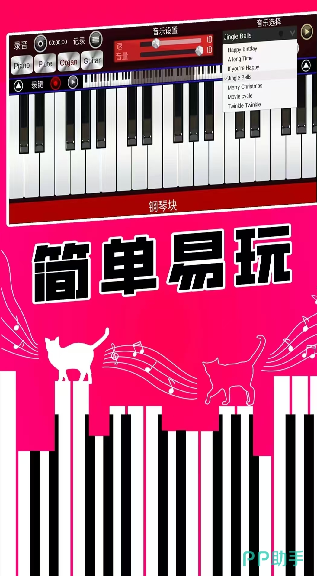 与完美钢琴相似,钢琴完美大师同样打造了接近真实琴键的画面与感触帮助玩家更快地适应电子钢琴。虽说是电子钢琴,但它的音色可是经过 专业人士调制,包严格要求音乐特色的玩家满意。同时,游戏中还配有钢琴节拍器和一键录制功能,各种经典的民乐,流行的曲子,曲谱简直是满到快溢出来了,快来弹一首吧。