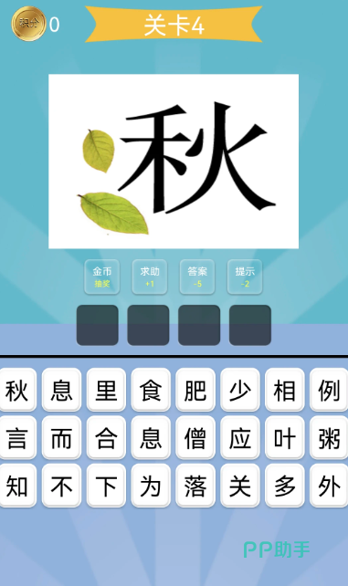 游戏里的每一个关卡,界面都会分成三个不同区域,最上面的区域会展示相关内容,中间区域则是用来填写答案的地方,玩家需要在这里写出自己想到的结果。最下方会给出单独的文字,供大家选择组合,这些用来提示的内容风格并不固定,有的是可爱的卡通画面,有的则是由几个文字拼在一起形成的图案。玩家可以依靠自己平时积累的知识来思考,一步步找出正确的结果。